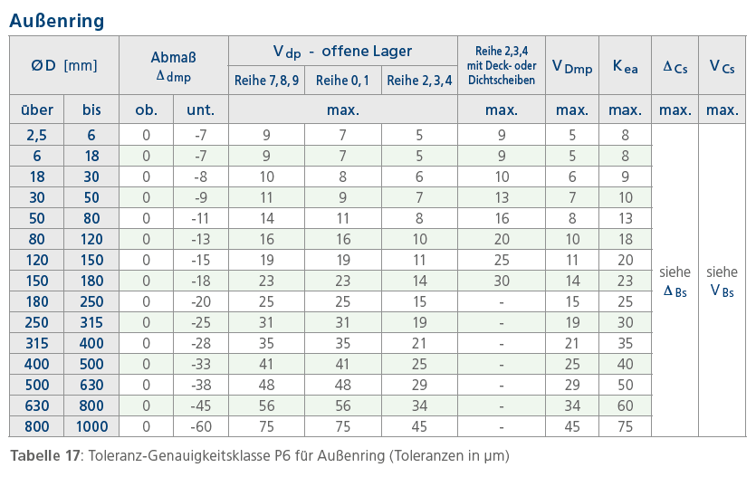 V Cs Schwankung der Außenringbreite