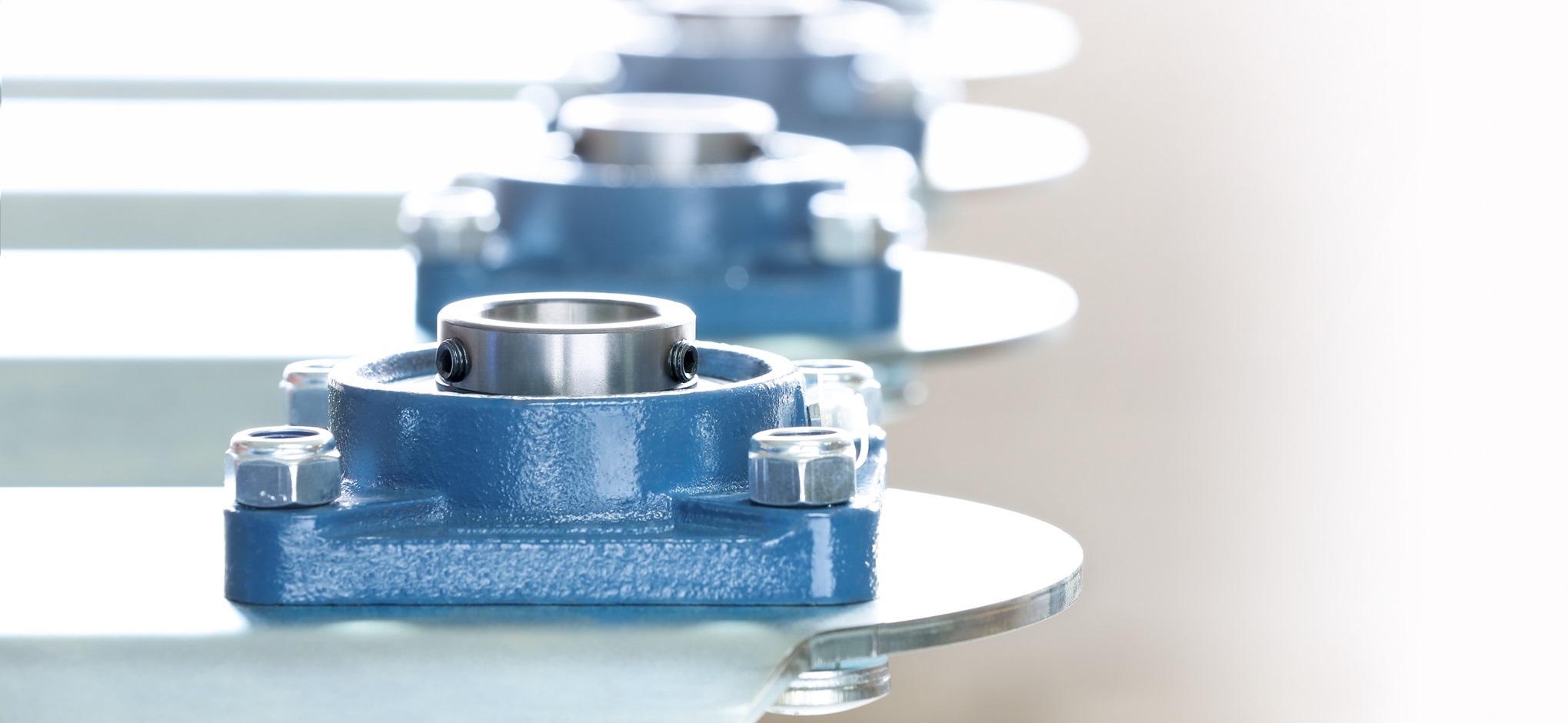 Ihr ganzes Potential entfalten müssen auch die verschiedenen Gehäuselager, in denen Achsen und Wellen laufen. WESTERMANN verwendet Gehäuselager, im Speziellen sowohl Stehlager als auch Flanschlagergehäuse aus Guss und bei leichten Maschinen auch Flanschlager aus Stahlblech von LFD.